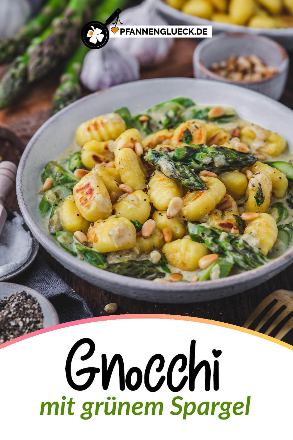 - Die angebratenen Gnocchi zur Spargel-Rahmsauce geben, alles vorsichtig vermengen und mit den Pinienkernen servieren.